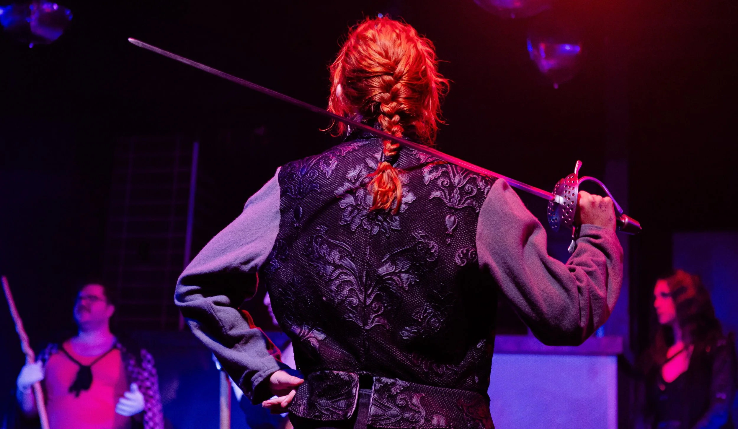 A stoner isekai play about two 30-somethings smoking a strange strain of weed that teleports them to a medieval fantasy world, backed by a rock band.